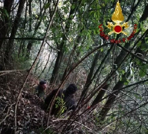 Oggi pomeriggio alle ore 13:20 è giunta alla sala operativa dei Vigili del fuoco una richiesta di soccorso da parte di un sessantunenne caduto in un burrone mentre cercava di recuperare il suo cucciolo di cane da caccia scivolato per circa 200 metri in una scarpata con forte pendenza e folta vegetazione e rovi. Non riuscendo a risalire il disperso si è messo in contatto con il 115 dove gli operatori che con la sua collaborazione hanno effettuato la geolocalizzazione. Dalla sede Centrale sono state inviare in contrada Donna del Comune di Cardeto una squadra ordinaria oltre a personale del nucleo SAF. Giunti sul posto i Vigili hanno individuato la macchina del disperso, con a bordo due cani che hanno provveduto a liberare, e nel contempo hanno iniziato la ricerca dello scomparso. Una volta individuato l’uomo i Vigili hanno iniziato la difficile operazione di recupero che ha permesso di portare in salvo sia il l’uomo che il cucciolo. Sila l’uomo che il cane sono in buone condizioni di salute e non hanno dovuto fare ricorso a cure sanitarie. Alle operazioni di recupero, che si sono concluse alle ore 19:10 circa hanno partecipato nove Vigili del Fuoco con tre automezzi.